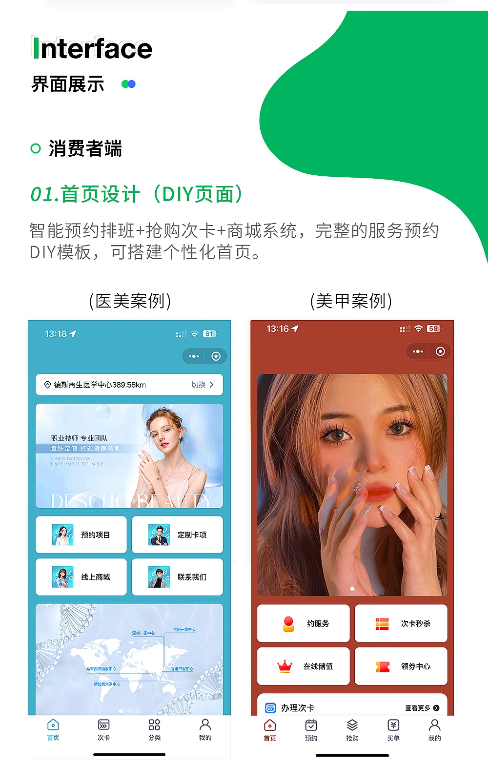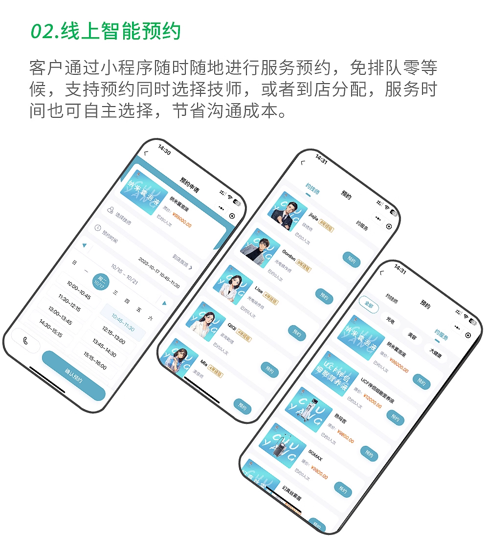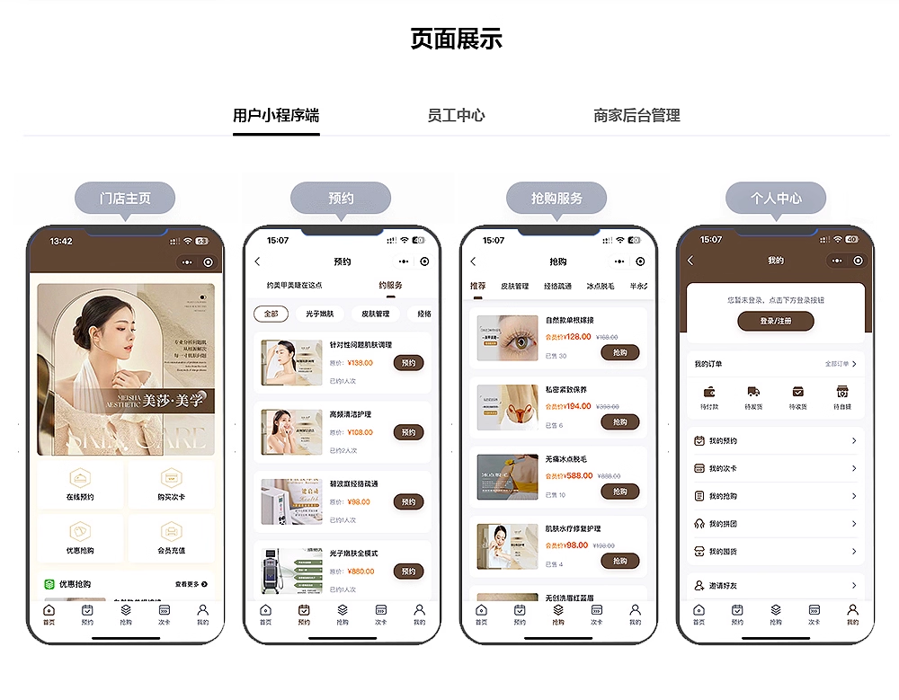 微信小程序美容院医美业医疗整形取号收银系统预约会员管理养生馆